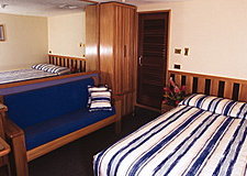 16 cabins averaging approximately 13 square metres (142 sq ft) 1 double or 2 single beds 4 with triple and double/single bed configurations.